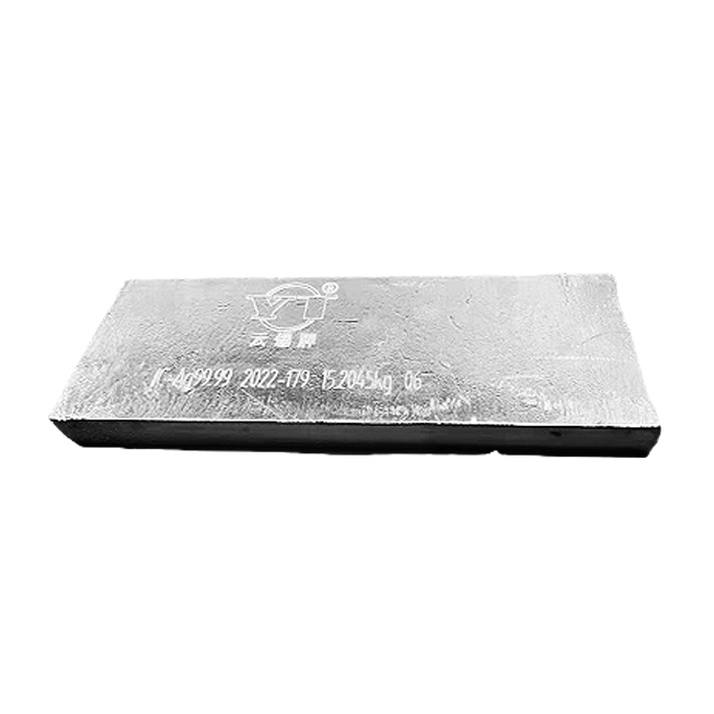 产品简介:铸造性能好,可以压铸形状复杂,主要用于制造玩具、餐具、锁具、五金装饰件、电气与电子铸件、浴室配件、汽车零配件、拉链、金属扣、表壳、风扇、生活用品、家用电器、照相器材、音响、机电产品及零件等。执行标准:GB/T 8738-2014品种规格:ZnAl4、ZnAl3.7观呈长方梯形,规格尺寸为450*100*50mm左右,锭重9~10kg,每捆100锭,采用塑钢带捆扎,净重约为900~1000kg。年产量:5万