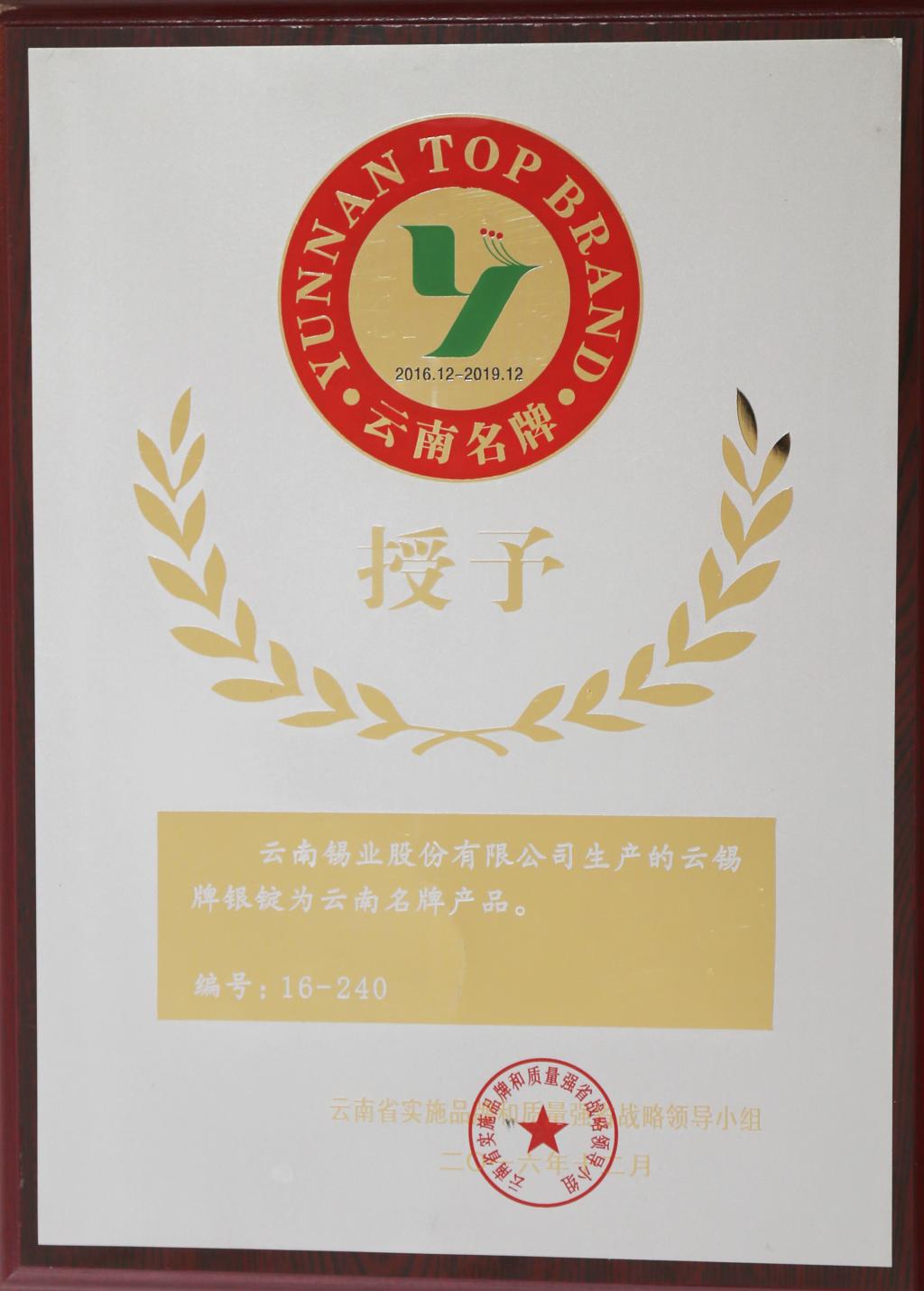 云锡牌银锭为云南名牌产品