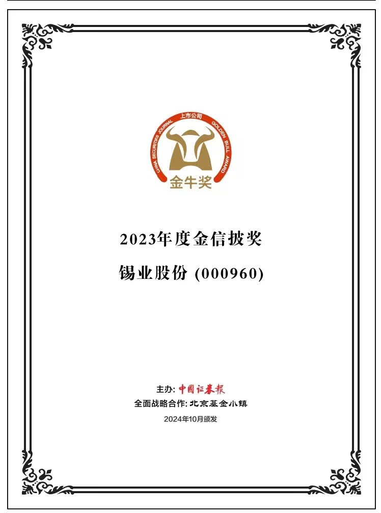 每一项荣誉都是锡业人智慧与汗水的凝聚