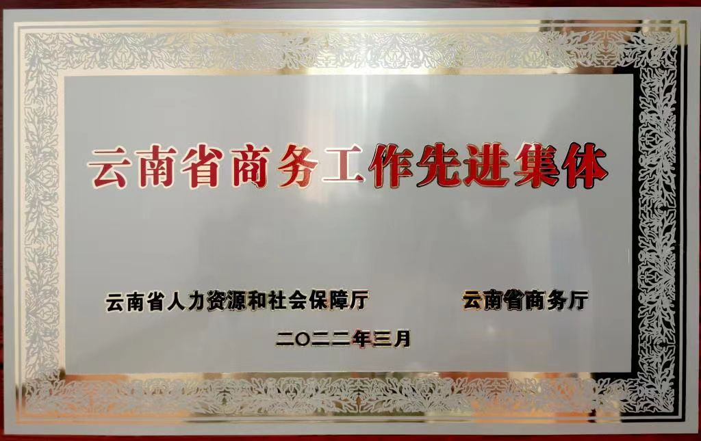 2022年,3044永利集团荣获“云南省商务工作先进集体”荣誉称号