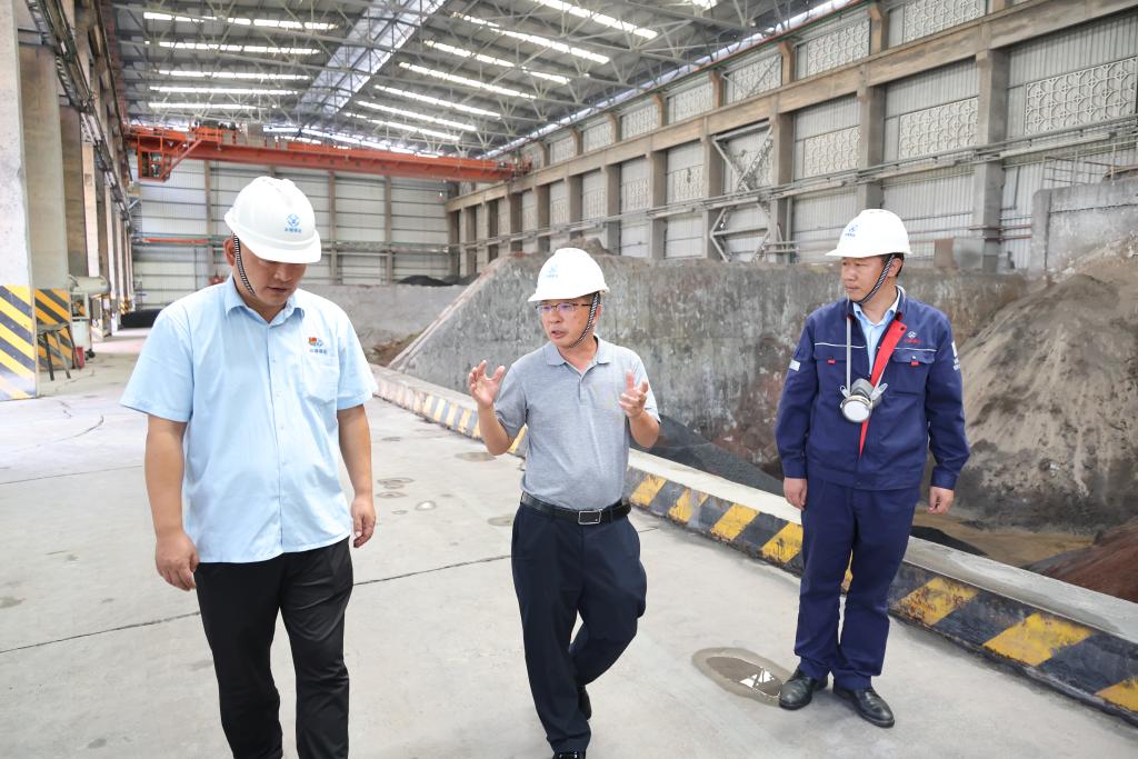 在锡业分公司,刘路坷一行深入熔炼车间、精炼车间、精矿仓等生产现场,详细了解当前锡冶炼原料结构、生产组织、产品产量等有关情况,对现场管理、检修进度、设备运行、安全环保等工作进行检查指导。