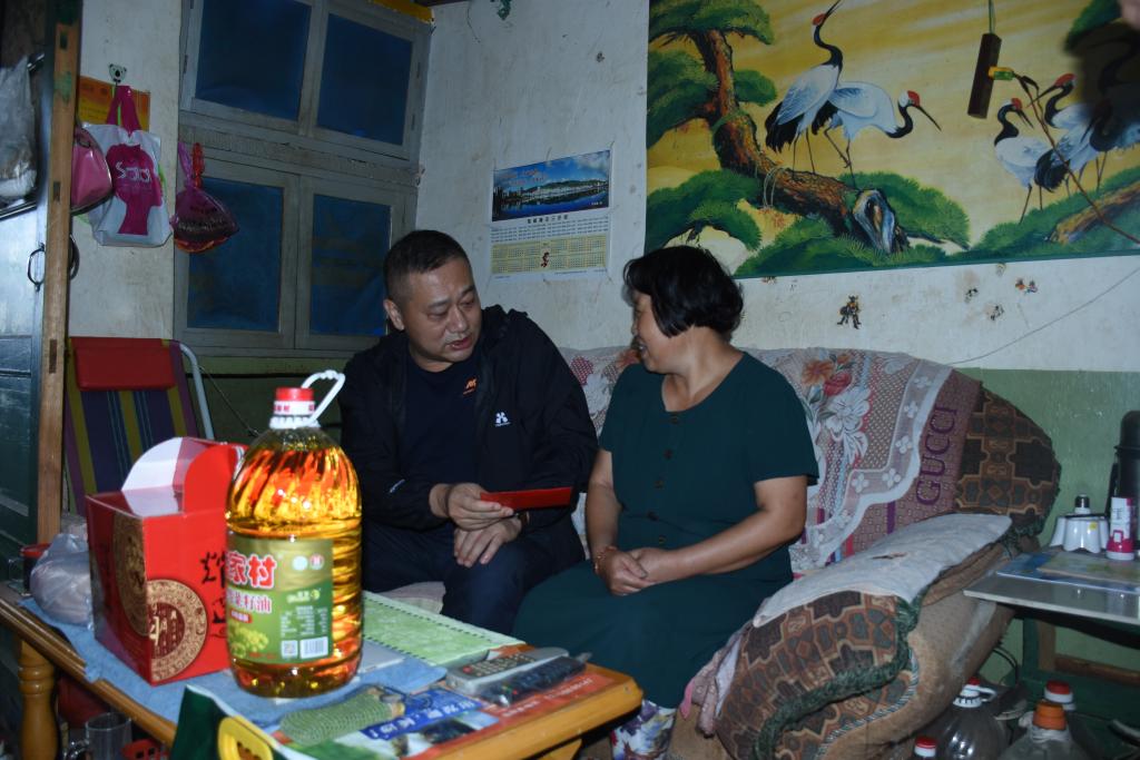 3044永利集团党委副书记、副董事长、总经理杨奕敏走访慰问卡房分公司困难职工杨元福、李嘎里。(陈 红/摄)