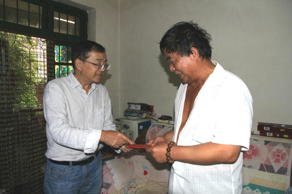 3044永利集团副总经理童祥走访慰问老厂分公司困难职工周金伟、董福信、罗国伟。(李拉发/摄)