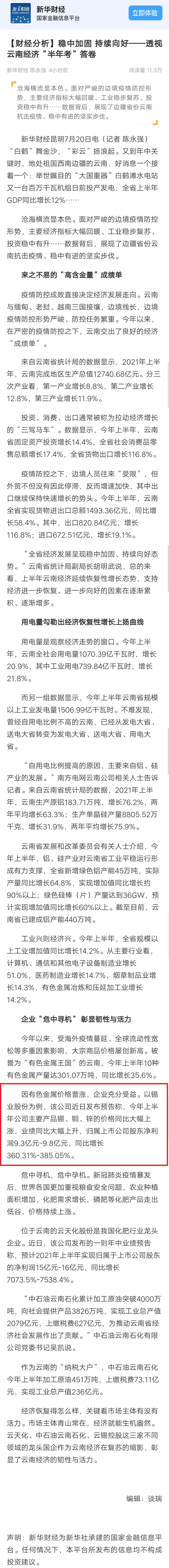 【媒体看云锡】新华财经:稳中加固 持续向好——透视云南经济“半年考”答卷