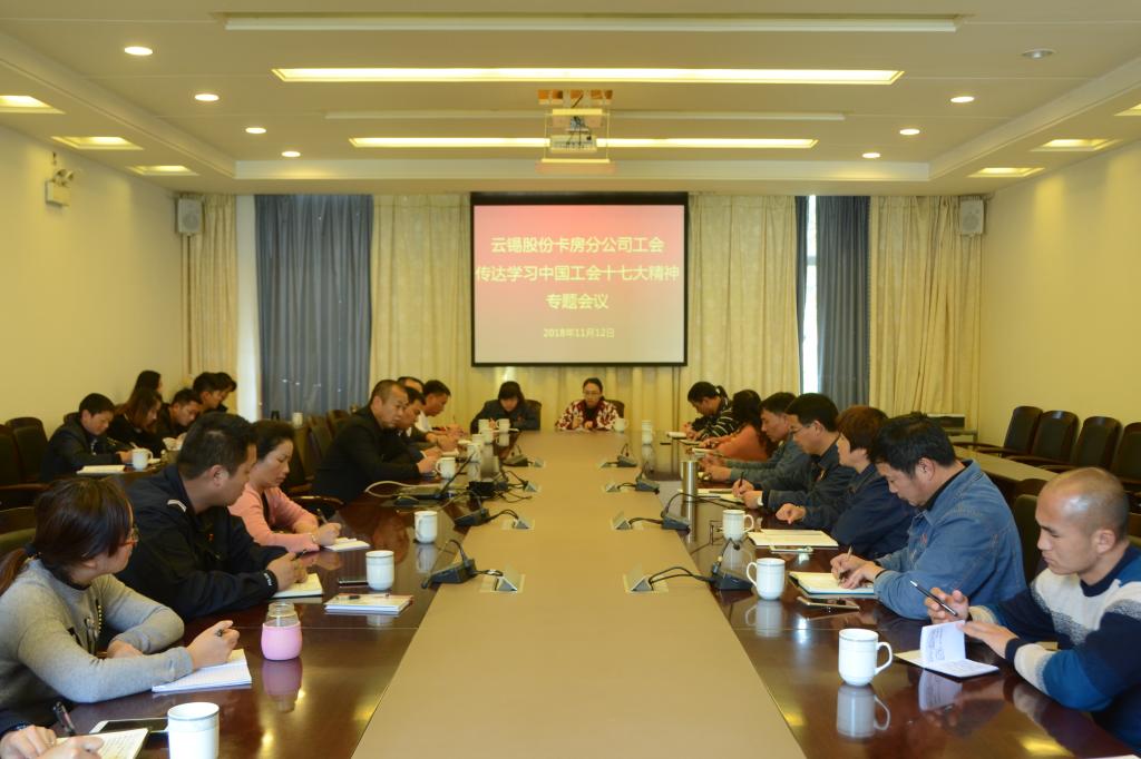 11月12日下午,卡房分公司工会召开学习中国工会十七大会议精神专题会,各部门工会主席、部门工会委员、群工部干事37人参加会议