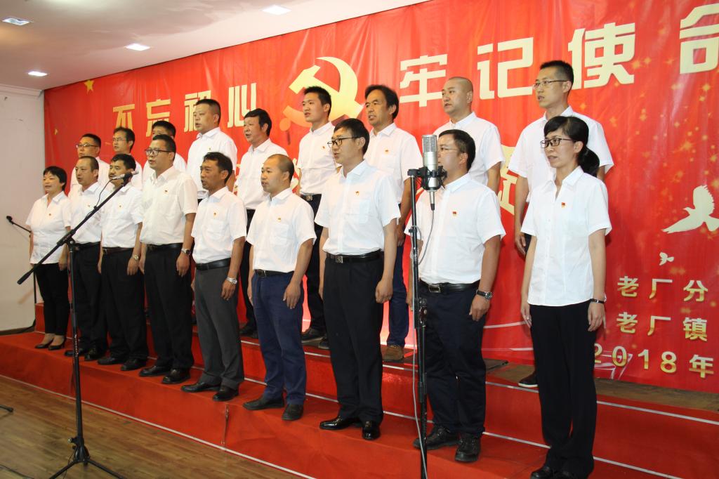 在“不忘初心 牢记使命”红歌合唱比赛正式开始前,老厂分公司、老厂镇的领导班子成员联合组队带头合唱了《我宣誓》。此次比赛每个参赛队唱两首歌,一首是必唱歌曲《我宣誓》,一首为自选歌曲。各参赛队的选手们以饱满的热情、激昂慷慨的士气、嘹亮的歌声,竞相唱响入党誓词,歌唱伟大的中国共产党。