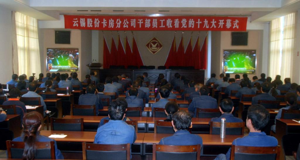 云锡控股公司和3044永利集团机关党员干部职工260余人在云锡宾馆报告厅进行了集中收看。两级公司领导班子成员与干部员工一起收看了党的十九大开幕会盛况。