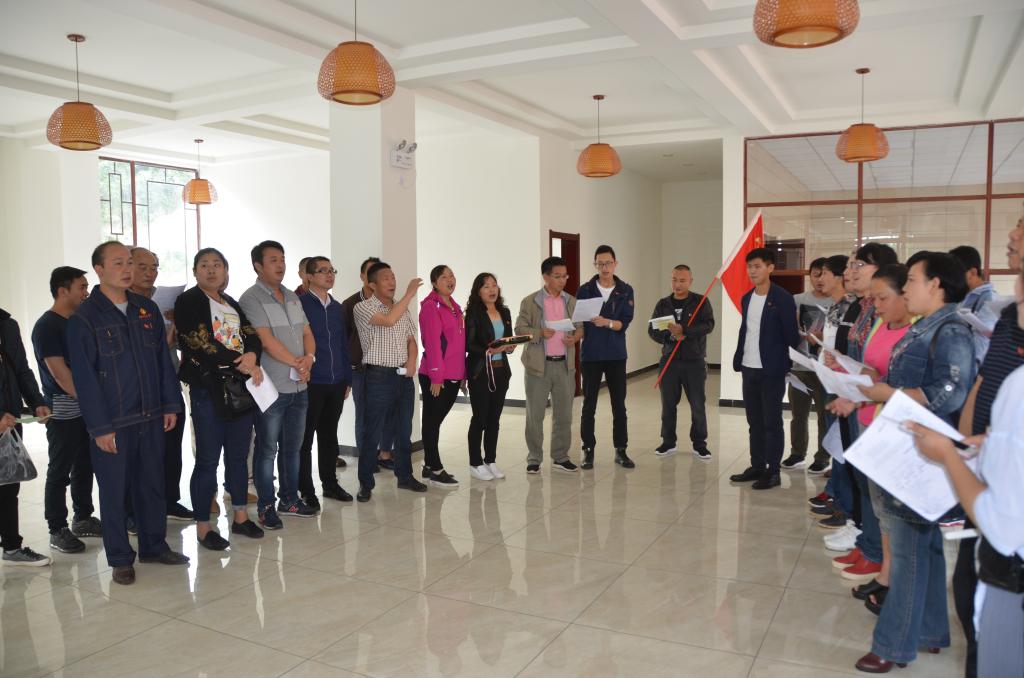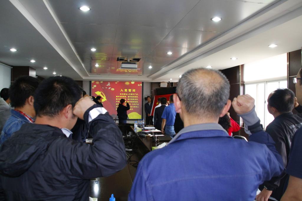 在党课开始前,锡材公司6名新党员面对党旗庄严宣誓,与会的40多名老党员一起重温入党誓词,进一步增强党员意识,牢记党员使命。