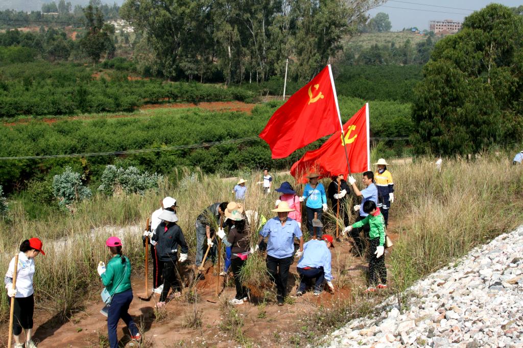 党旗在尾矿坝上飘扬