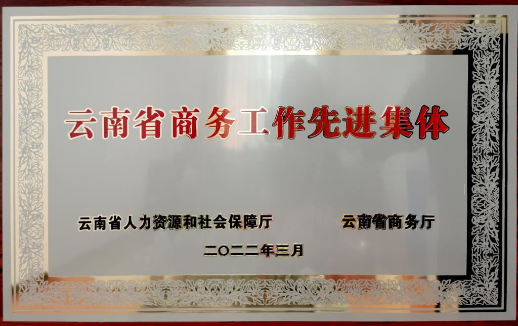 3044永利集团荣获“云南省商务工作先进集体”荣誉称号