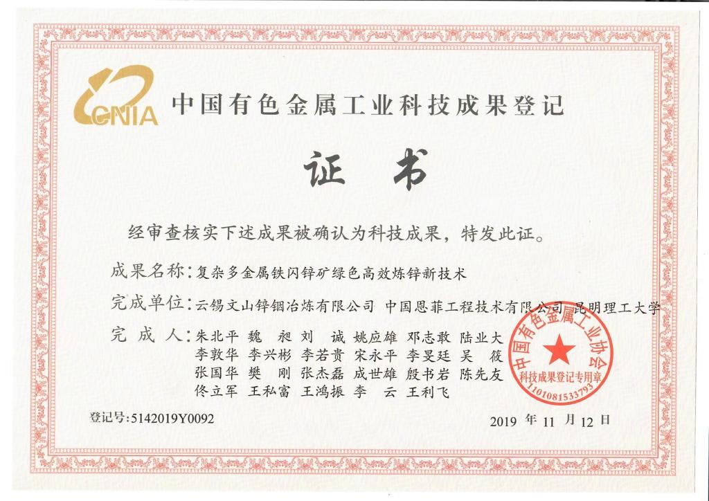 文山锌铟炼锌技术入选有色金属行业碳达峰重点推广绿色低碳技术